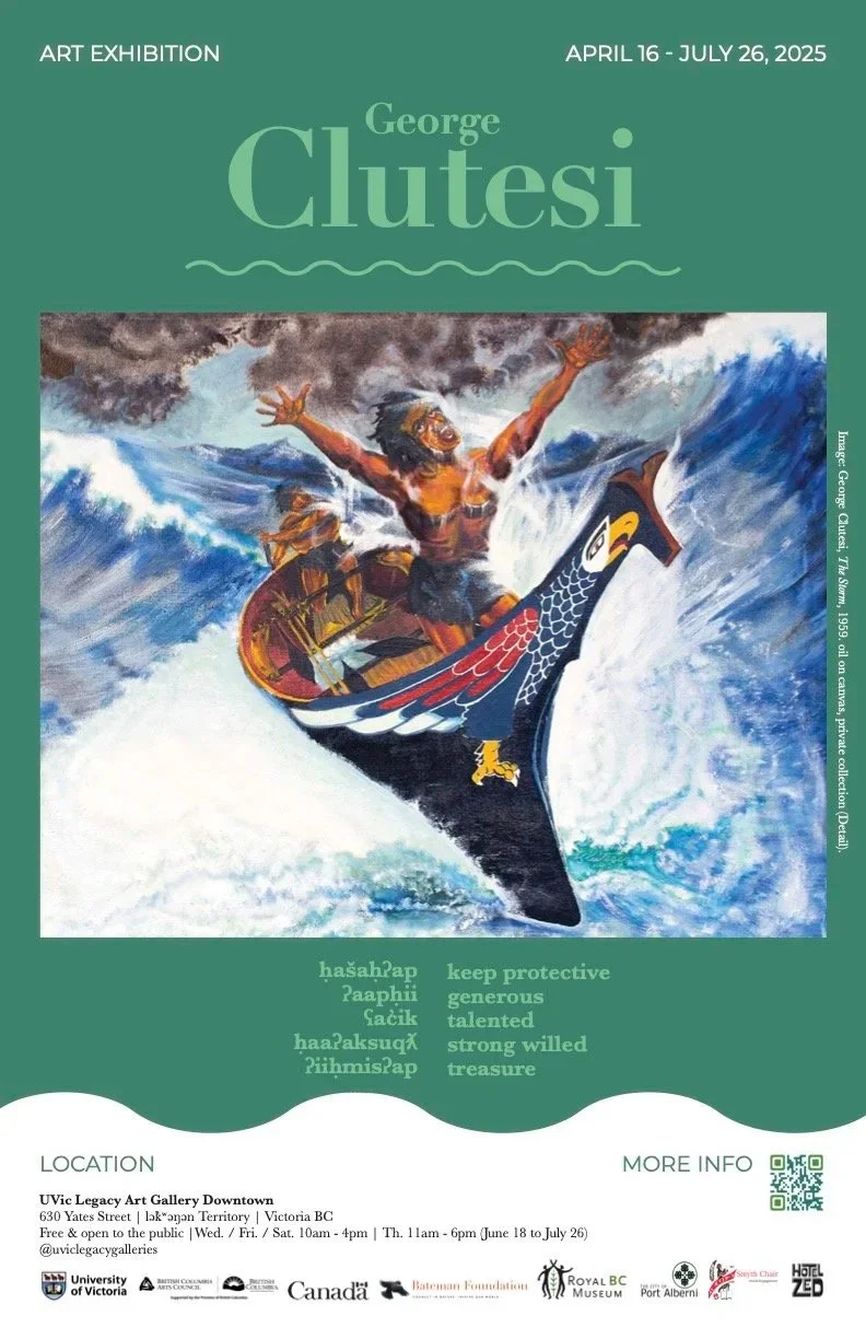The Visual Stories Lab is the creation of Dr. Andrea Walsh whose curatorial community-based projects have been anchored through this space. I joined the VSL in 2012 during the second year of my doctoral program and I remain incredibly grateful for the experiences I have gained learning from, and working with, this collective. Key projects that I have participated in include the Residential and Indian Day School Art Research Program, Qw’an Qw’anakwal: To Come Together, and most recently the exhibition GEORGE CLUTESI: ḥašaḥʔap / ʔaapḥii / ʕac̓ik / ḥaaʔaksuqƛ / ʔiiḥmisʔap.